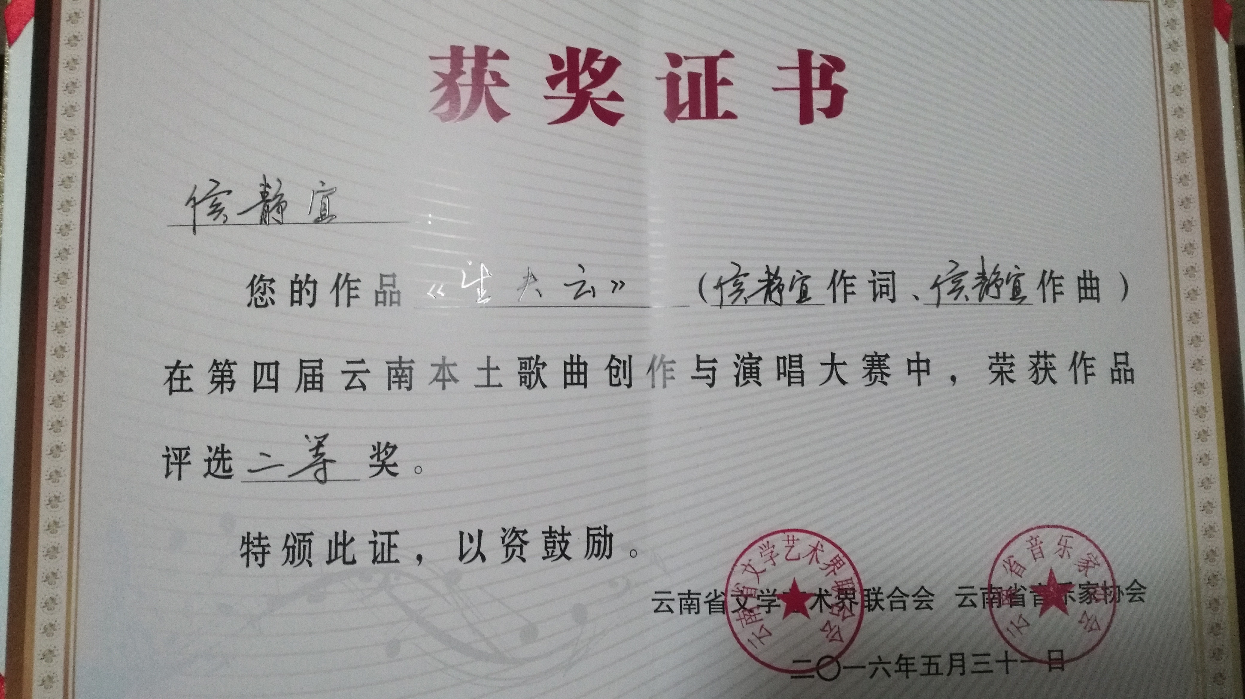 获奖证书